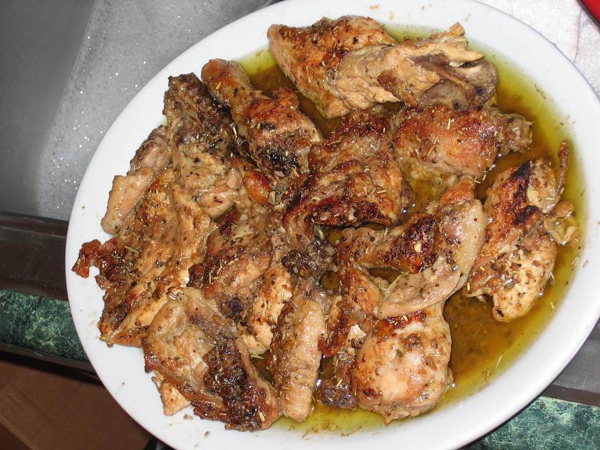 I cooked up to pair with it, the little round tubes, the meat itself was just PERFECT! The photo I led off with was the actual restaurant dish as shot in the place itself, I think. This photo is 'live', and still cooling on the counter. I browned the chicken in a pot, then scraped down the 'gratin' in the oil to free it from the pan, mixed in the dry spices, mixed thoroughly in the pot, added the wine, brought it to a rippling boil, then poured it out over the chicken I had sitting in a large pyrex baking dish. I put it in the oven on the lowest rack under the broiler and about every 10 minutes, spooned the juice over the pieces of chicken. It really stayed hot, cooked the chicken fork tender, and gave me the perfect crusty brown color. I could have let it get browner for more flavor, but I was HUNGRY. Also, it should be noted I took a short cut since I had little cash with me on the way home from work. I had money for wine or fresh garlic, and I had garlic powder at home. So I made the tough call and went with powder. It affects the look a lot, the flavor some, and ME none at all. MAKE THIS DISH! Last edited by OLS; 09-23-2011 at 06:48 PM. |