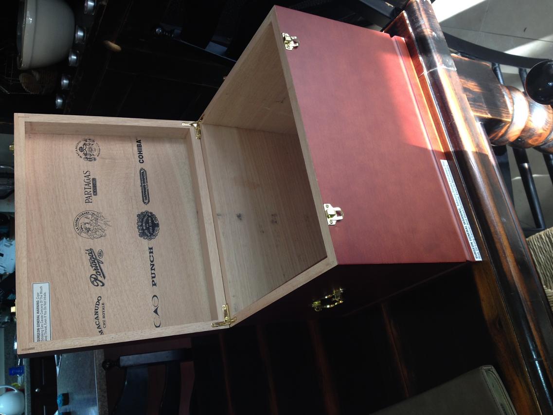 That's pretty cool looking. With all the different logos on there I am curious about what it was originally used for, or if it's just a humidor with a bunch of logos.