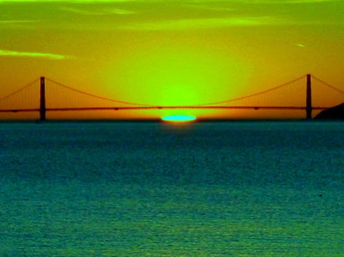 green flashes and green rays are optical phenomena that occur shortly after sunset or before sunrise, when a green spot is visible, usually for no more than a second or two, above the sun, or a green ray shoots up from the sunset point. Green flashes are actually a group of phenomena stemming from different causes, and some are more common than others.[1] green flashes can be observed from any altitude (even from an aircraft). They are usually seen at an unobstructed horizon, such as over the ocean, but are possible over cloud tops and mountain tops as well.