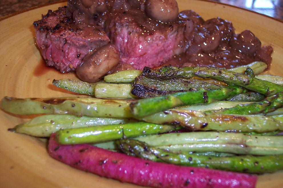 Oh yes! A big ol T-Bone I split with my wife along with some asparagus, green beans, garlic, jalepeno, and radish, yes radish .