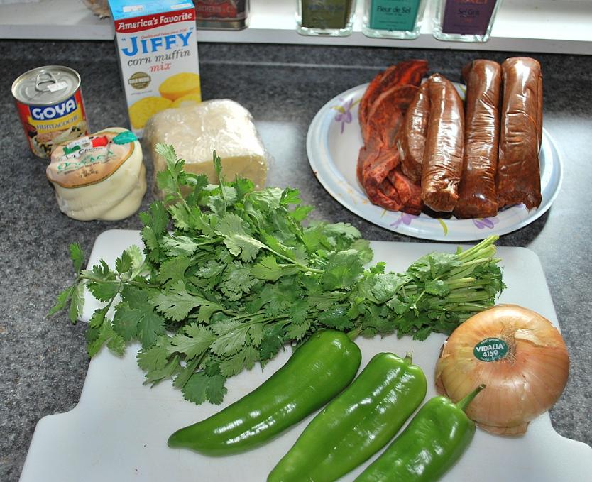 The finished producted turned out awesome, served along some mexican rice and refried black beans. The cornbread batter tasted a lot more like a tamale, soaking up a lot of the rendered fat from the sausage. One bite you get a taste of the chile/cheese/huitlacoche, another the cornbread and a nugget of the shortribs.