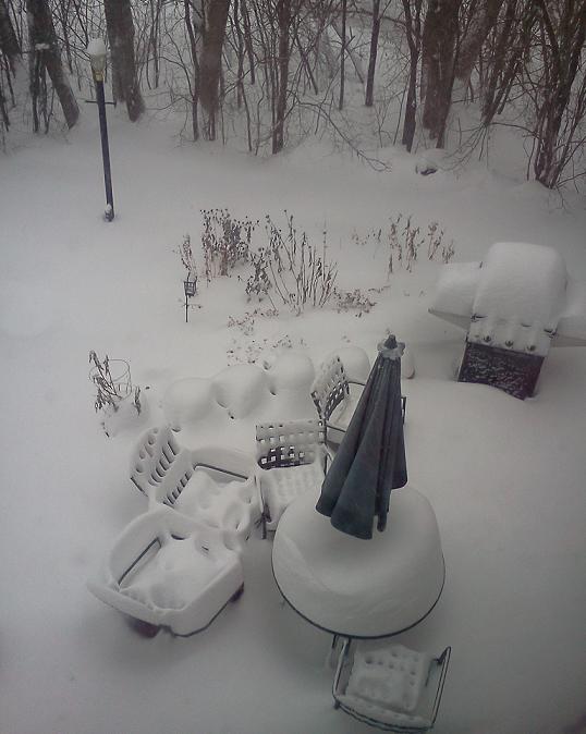 Holy buckets, I think it's even snowing harder now. I can't recall that I've ever seen it snow like this.