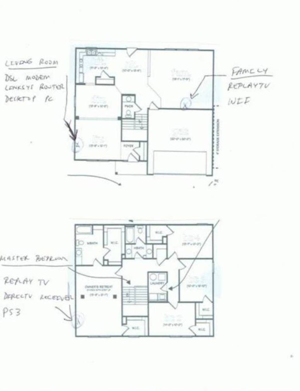 So, I think it's only by luck that I was able to hook up a wireless router and get it to work for my laptop. I've not been so lucky getting my wireless bridges to work with my ReplayTV's(much like Tivo, but ReplayTV is also capable of streaming shows from one unit to another and you can send/receive shows...kinda like a napster of sorts). Anyway, I have a host of stuff I want to connect to the net at the locations (X marks the spot) in the layout attached here.