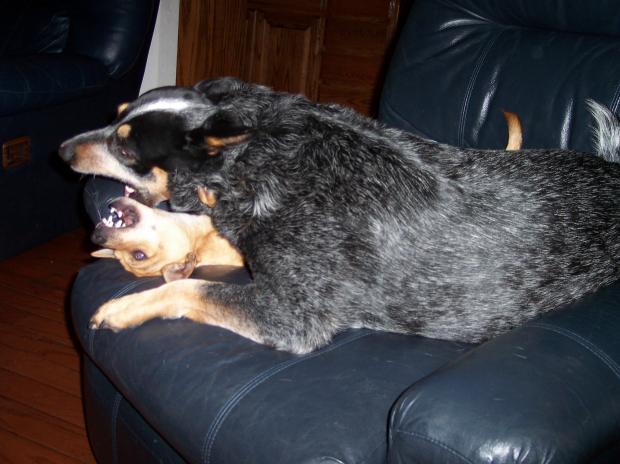 Here's our two dogs. We got the Min-Pin when we realized last year that it was only a matter of time before we had to put our Dalmation down. I think she kept him going longer than he would have if we didn't have her. After he passed we decided to get a rescue so that our Min-Pin Mya would have company. So now we have these two peas in a pod, Mya and Mika. They got along instantly and never leave each others side. Mika is a Carolina Dog(American Dingo)/Mix, just fancy for mutt