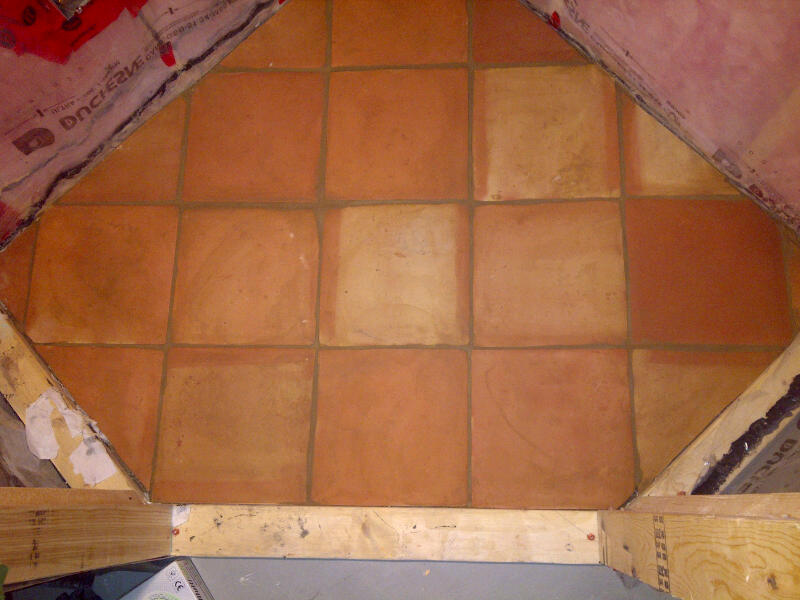 -1" think unglazed terracotta tiles for cool & moisture wicking from bare cement floor underneath