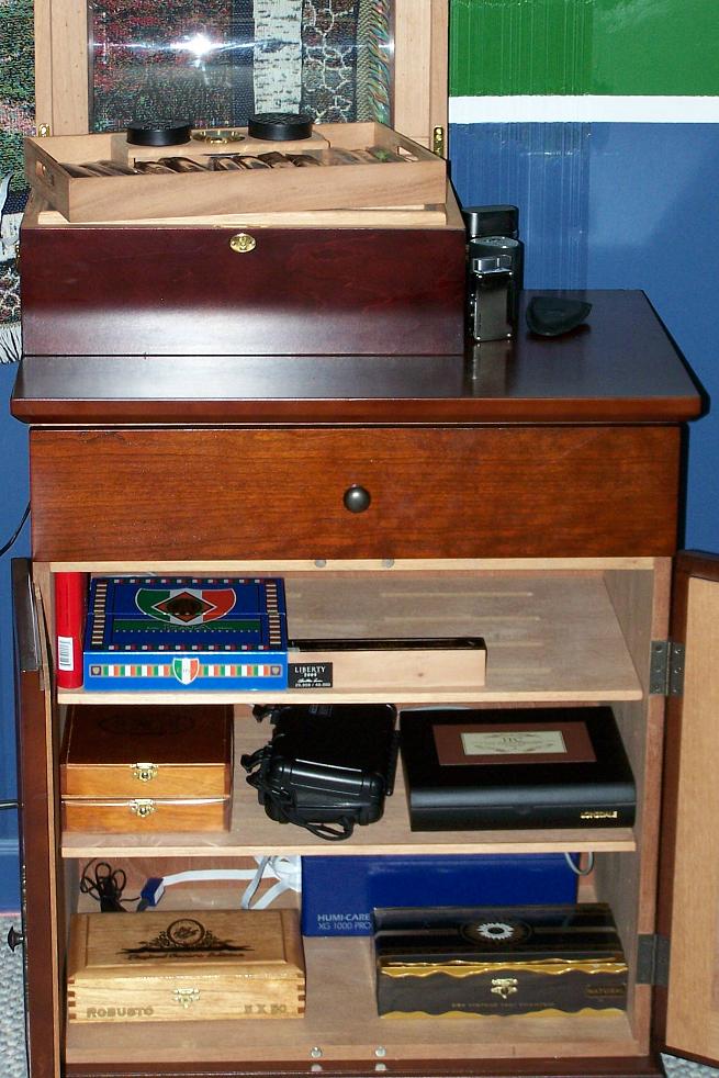 The top one I got today as my nieghbor was throwing it away. It looked like it was never used (it still had tape holding the shelves inplace!) He claimed he was gifted it, but already had a larger one, and it made a noise.... I took it home, cleaned it up, and plugged it in. The reason it made a noise was it was unlevel!! I leveled the feet and now have a box humidor. Ordering some beads when I get paid.....