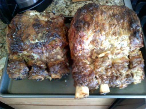 OK fellas, here's pics of the main event, the Herb crusted Prime Rib and the Smoked Turkey. I'll tell you what, I am never putting another turkey in the oven. Smoking is the way to go. This thing was perfect. My brother got 5 pounds of leftovers this morning.