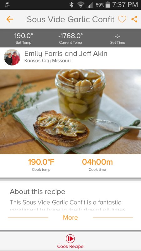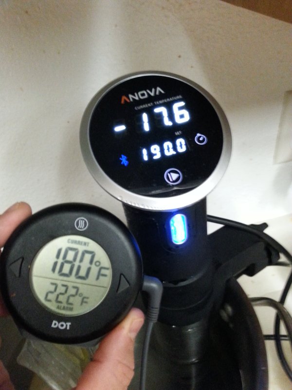 Customer support at Anova doesn't seem to have done anything since they asked me a week ago to confirm my address. Personally, I thought the -1768F degree reading that it was sending over BT was kind of droll considering that absolute zero is only -460F. |
