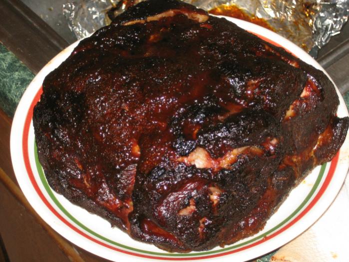 OK, let there be meat. The picnic has an hour at least to go, don't know, I have no thermometer.