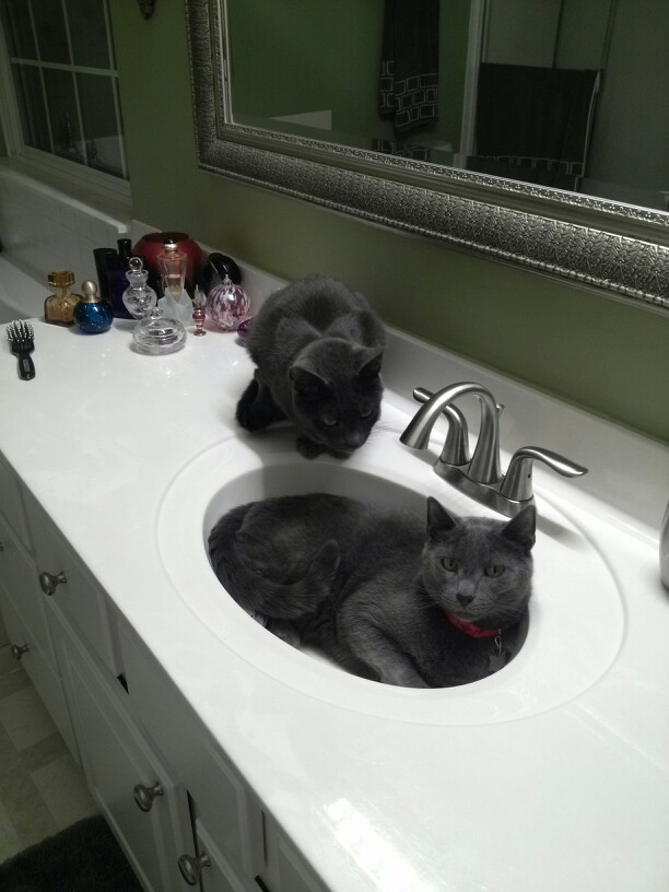 Sammy looking in on Deano, in the sink.