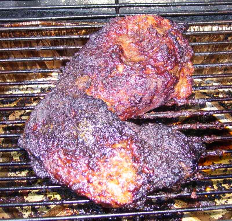 The finished product. Should've shot the pic before I threw on the grill. The skin was more mahogany and hadn't pulled back. Still tasted damn good.