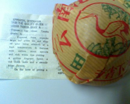 A co-worker recently came back from a visit "home" and knowing I really love Puerh, brought me back a load of goodies. Part of the prize were a dozen Tuo's of a nice green Pu of 1997 "vintage". It has a nice aroma, slight camphor smell (which I like in a green Pu) and appears to be aging quite nicely and evenly. The leaves look quite intact, and I detected a few twigs when I broke one open to sample, but not too many. It is very flavorful, but you really have to stay on top of water temp and steep times. I wasn't paying attention on one steep (3rd or 4th in a session) and let it go too long, the result was bitter on the back of the palate. I paid attention after that, and found it very enjoyable overall. I use a 120ml yixing pot and got a solid 8 brews before the aroma started to fall off, after the 10th the flavor was pretty much gone but the color held. I would like to swap them for some sticks if anyone is up for it. I enjoy powerhouse cigars, mostly Nicaraguan in origin (Joya de Nicaragua, Oliva V, Padron, Perdomo Champagne.....you get the drift....) I have 3 that I am willing (for now at least) to part with. So here's a chance to grab a 15 year old Pu Erh to drink and/or stash for a few more years. PM me if you're interested and we will work out a swap.