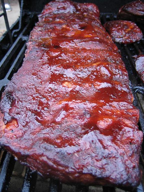 Smoked a rack of spare ribs for a girl at work's birthday. Trimmed em to shape and smoked all the trimmings,