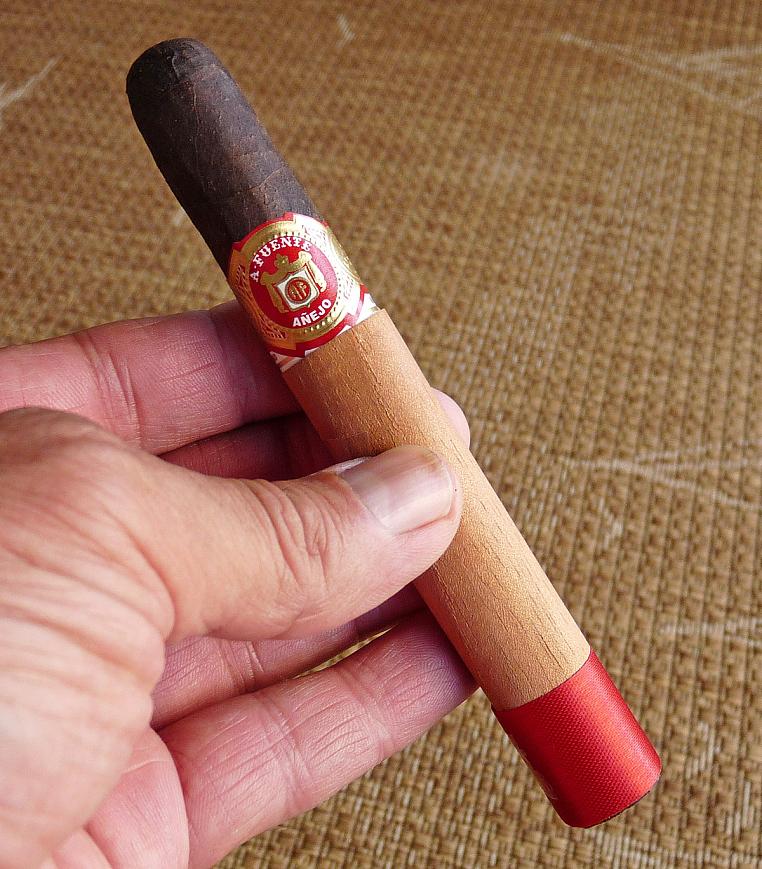 5 5/8 x 46 Prelight: Milk chocolate, cognac, little sweet hay, draw was a little firm but sweet on the lips and rich with tobacco taste 1st 1/3 Full bodied, ultra smooth, slightly sweet with a nice crisp peppery finish. A little twangy but this pepper I like, similar to a gourmet pepper Espresso/coffee cedar, all sweet notes Cigars is hard not to want to smoke it faster with it tasting sooooo gooooood ![]() Some people get floral notes but I may not be experienced enough to pick that up yet 2nd 1/3 Do get that soaked in cognac flavor I love so much, makes me want to have a shot of cognac as I smoke this beauty ![]() Sweet gourmet pepper continues on the tongue along with cinnamon, spice, leather, wood and dark coffee flavors Straight burn and very slow, nice Final 1/3 I can almost hear a party with french accordions and the ringing of wine glasses going on in the background as I sit on a balcony with friends enjoying the same cigar in a celebration.... almost ![]() Chocolate getting stronger, tingling on my lips and getting a buzz, no bitterness at all. I like to hold the smoke in my mouth and force it out slowly to get more of the nuances of the flavors, something I started to do with the Anejo's Great celebratory cigar, perfect for a New Years Eve or even today! ![]() Smoke time 1 hour 15 min Score 10 out of 10