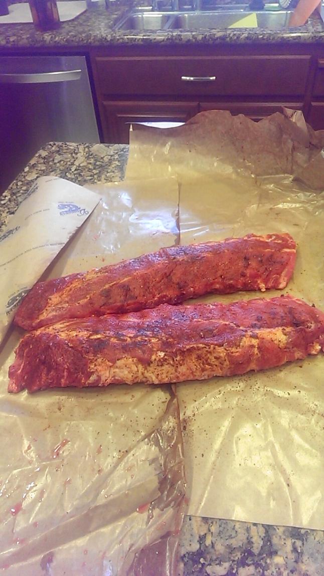 Pork belly marinating. Not quite a char sui sauce, but enough good flavors of soy, garlic, five spice. Was at the store for a few things. They had St. Louis cut ribs on sale. Grabbed a couple slabs. One done in five spice and the other traditional BBQ rub. Plan is to fire up the pellet grill around noon, throw on the meat and drink beer, smoke cigars.