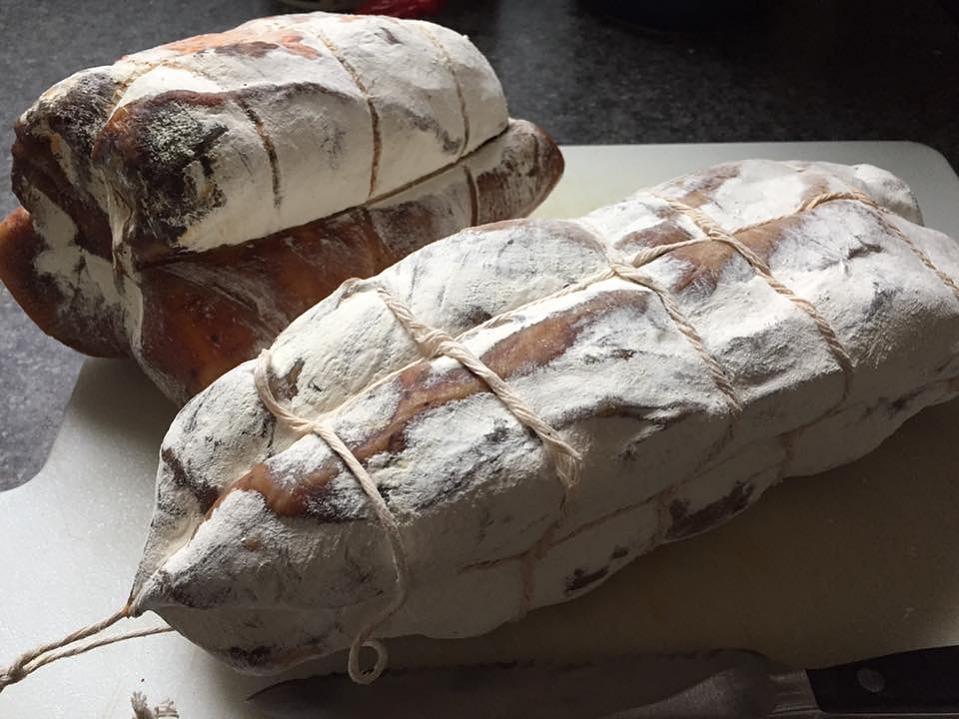 The smaller one in the back is a lonzardo, loin/fat cap. The one in the front is a coppa.