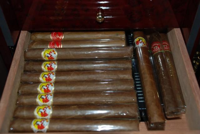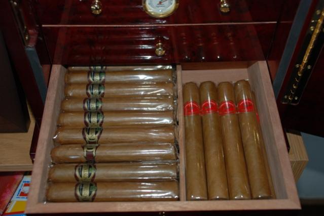 I know this is an old topic but I wanted to start a new thread on humi pics. Just got a new camera and had to try some pics of my humidores and my stockpile. Needed to take the pics now because with warm weather approaching (I hope!) many of these will be gone in the next 3-4 months!!! I have just started enjoying "better smokes" but here's what I have so far. Lots of singles because I still have yet to try a lot of these to see what I like...want to buy more of.