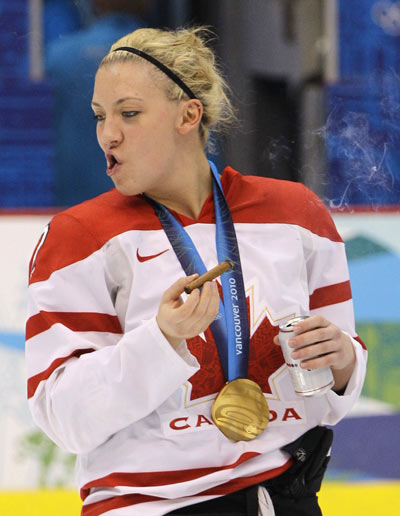 I hope they were good cigars from south of Miami. I would be glad to party with any of them. And I'm glad they showed their national pride and drank Canadian beer even though it taste likes moose urine. A few bottles of Trois Pistoles would have been better. I guess if the US Women would have won the Gold, they would have celebrated with Oreos and milk in keeping with the squeaky clean image that the IOC wants all athletes to have.