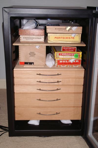 With glass tops on each tray and drawer (solid bottoms); there's effectively 5 mini-humidors/cab's/dress boxes.