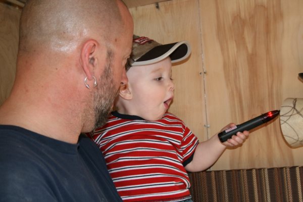 My Grandson Daniel, helping me with restoration of my camper/herfmobile.