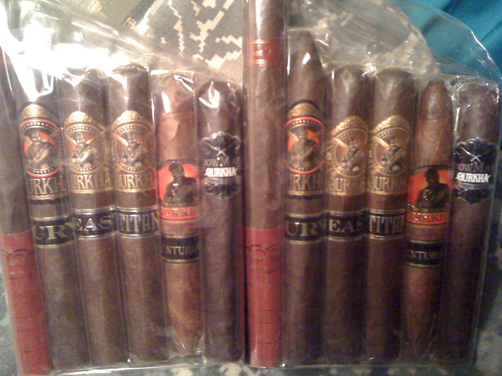 2 - Gurkha Beast (6.5" x 58) 2 - Gurkha Widow Maker XO Maduro (6" x 60) 2 - Gurkha Black Dragon Fury Gran Torpedo (7" x 56) 2 - Gurkha Titan (6.2" x 56) 2 - Gurkha Centurian (6" x 60) 2 - Gurkha Ancient Warrior Presidente (8.5" x 52) I'll have one Presidente for election night returns. |