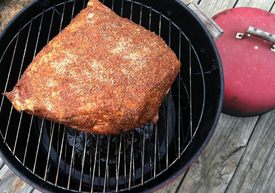 And the butt just went on. Used a bit of bbq seasoning on the outside, as well as mixed in black pepper, a bit of cinnamon, and some brown sugar in with it to help with the flavor. All combined with the brine, im really hoping it turns out good.