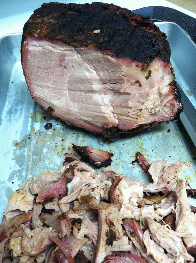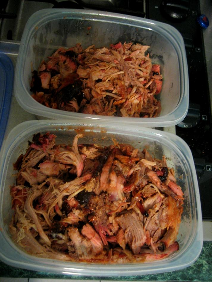 End result after 9 hours of cooking..... turned out great! made some pulled pork soft tacos that were killer.