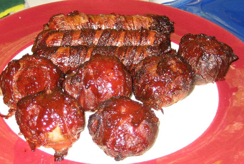 half MOO, half OINK...I got that from the other guys on here...meatballs wrapped in bacon. They need to come off