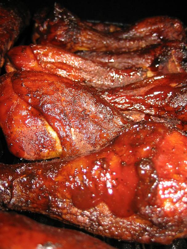 mouthful of BBQ off your grill. It FREES a man. I am also never going to assist her in any way outside of keeping the area around my front door neat and the grass cut. Where was I?? Oh yeah. Today's selection. I rack of BBRs and 10 Chicken Wings, smoked to perfection and then slathered with Sweet Baby Ray's for the last 30 minutes. Tastes like sweet butter on fresh corn. |