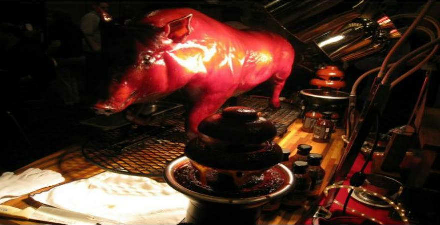 Some BBQ lover's take on the chocolate fountain, that's TOO MUCH, lol.