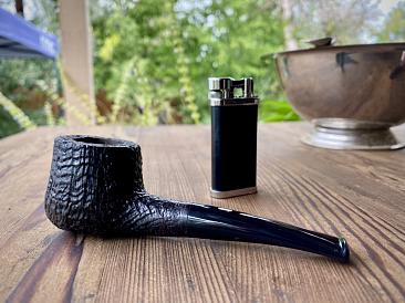 Had some Mac Baren HH Latakia Flake earlier (yum!) and am now at the pub having some Peterson Early Morning Pipe and a porter on the patio.