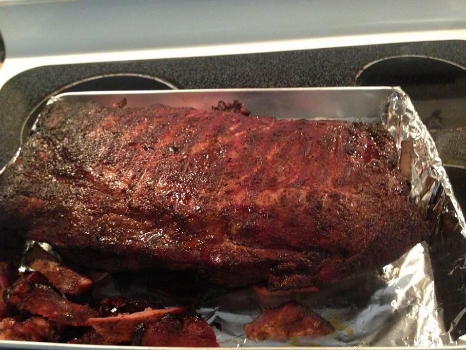 Threw 3 racks of ribs on the smoker this morning. trimmed and did the rub last night, decided to throw the trimmings off to the side for sample purposes
