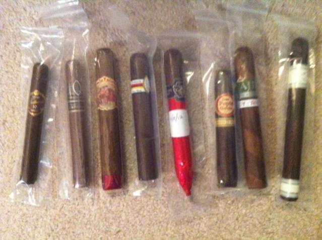 NC Takes- Flor De Laos Antilies, Quesada Oktoberfest, Quesada Espana, Not sure red wrapped with Bee Honey n Handgrenade?, Tat 10, Candy Cane, Viaje Friends and Family, JJ Maduro. NC Puts- Dirty Rat, Stuffed Turkey Dark Meat, Camacho Triple Maduro, Anejo Shark 13, Nica Rustica, La'Atiller, Oliva Melanio, Melanio Maduro and a Baitfish. CC Puts 09 Monte Master a/t, 09 RYJ cc takes 10 8-9-8 , 12 Bolivar BBF Let me know, Could go out tomorrow.