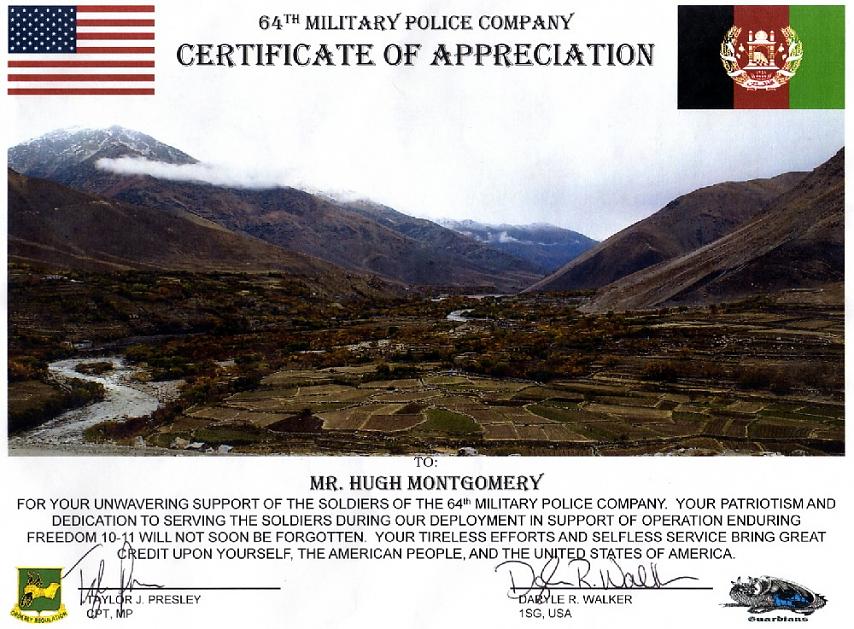 Today came a nice letter, magazine, and this certificate from Daryle. Although I am named, it is really for all the wonderful troop supporters that provide me with goodies to send to the guys and gals in harms way. Thank-you, Daryle- more coming your way, brother!