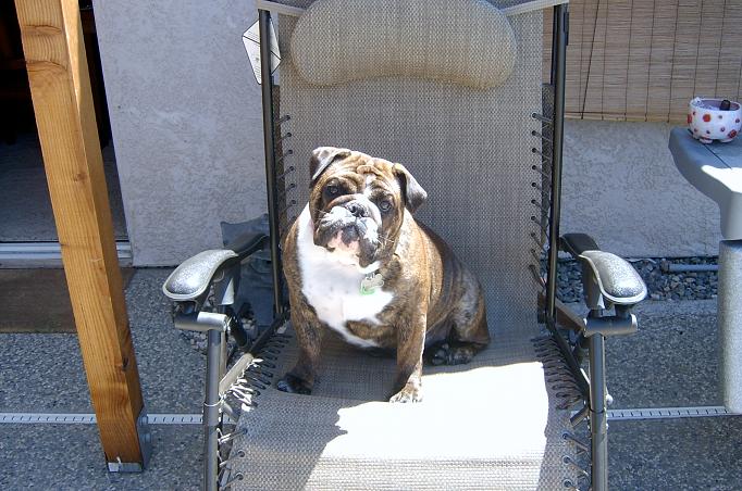 Here's our English Bulldog, Zoe... she loves to come out and have a cigar with me!