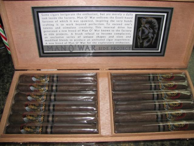 Box of Man O' War Phalanx and a Cigar.com March madness sampler containing