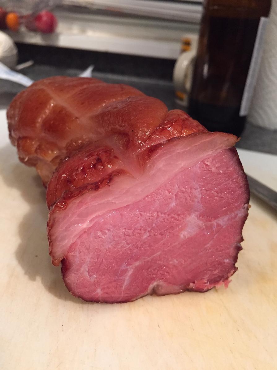 First of two maple bourbon hams to come out of the smoker. Perfect salt level, flavor is amazing. Still full from my early Xmas eve dinner and I kept slicing off tastes.