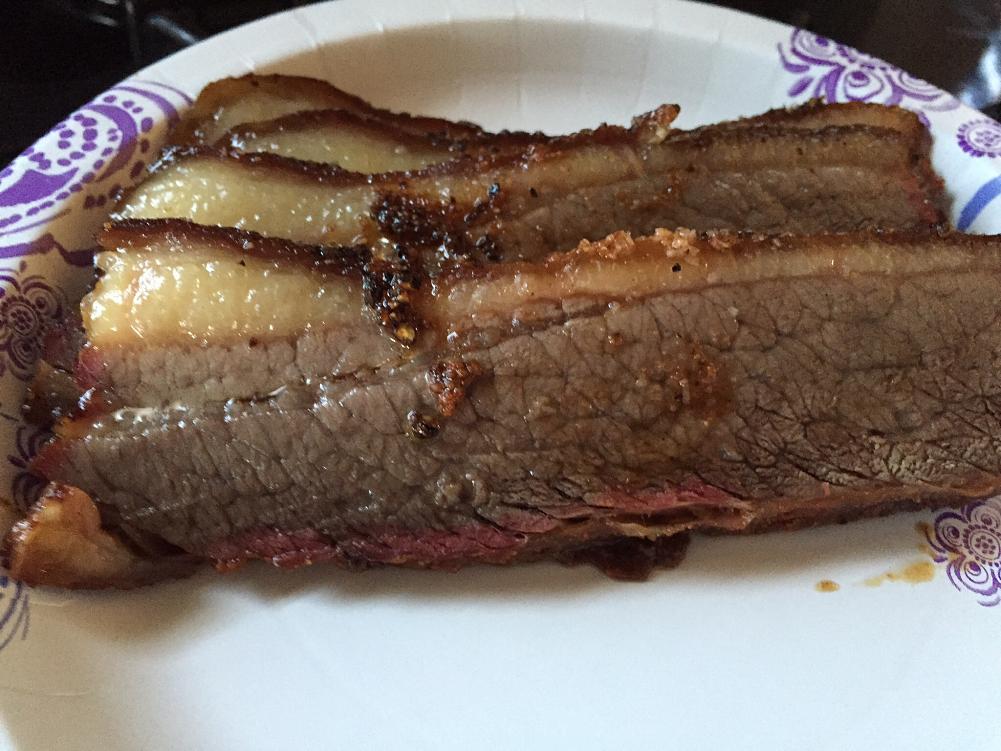 Roughly 60 degrees today, fired up the pellet grill. Did a small brisket flat I've had in the freezer for some time. All grass fed beef from a local farmer. You can taste it. Only drawback was I used too much salt. Not in edible, but even a bit salty for me. The fat helps counter it a bit.