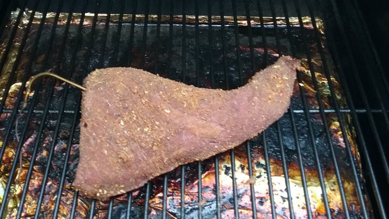 Was kind of busy yesterday so I didn't have time to fire up and tend to the Santa Maria pit for tri-tip, so instead I smashed up some mesquite lump charcoal and mixed it in with the pellets on my pellet grill. About 30-35% charcoal, the rest Lumberjack Oak-Hickory-Cherry pellets.