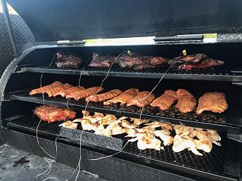 I have a slingin steel. Ultimate game day. 48” chargrill, with a 48” barrel with 3 racks. I can do 150 racks of ribs at one time in the main chamber. Then I have a warming box over the fire box that I can convert into another smoker with dampers. I can do an additional 50 racks in the warming box. When I get off work I’ll see if I can post a pic of the front view of the smoker. I also have a triple sink in the back with a propane fed water heater