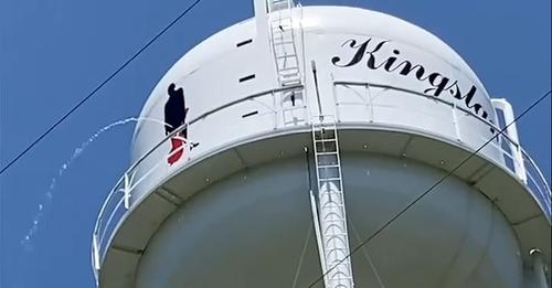 Apparently, someone show the image of Johnny Cash on the side of a water tower in Kingston.