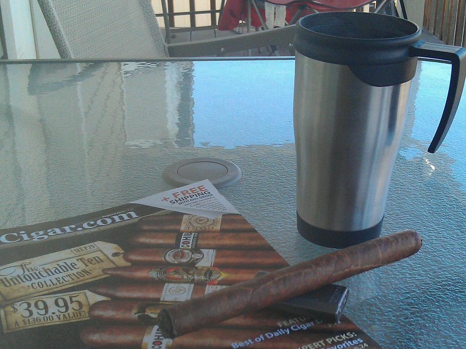 VS Series 55 Corojo while enjoying some coffee and looking over the cigar.com mag I got yesterday.