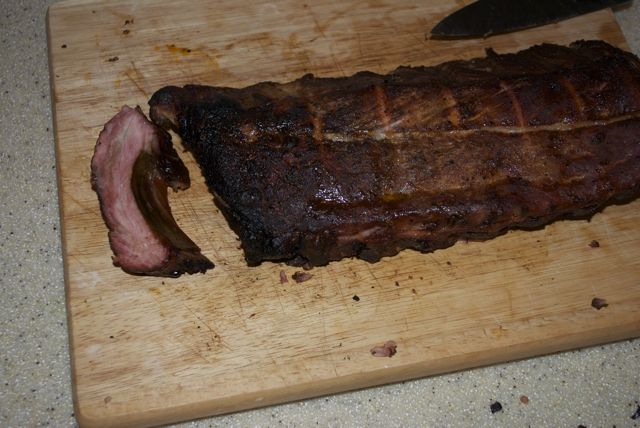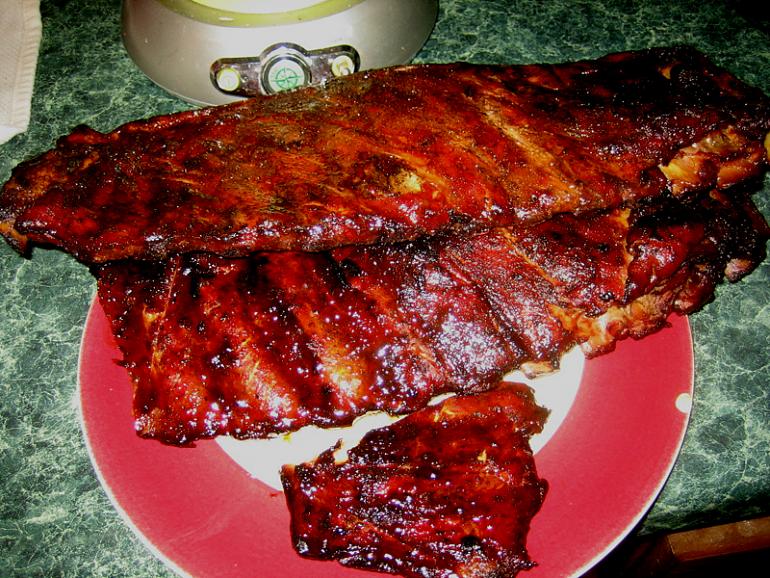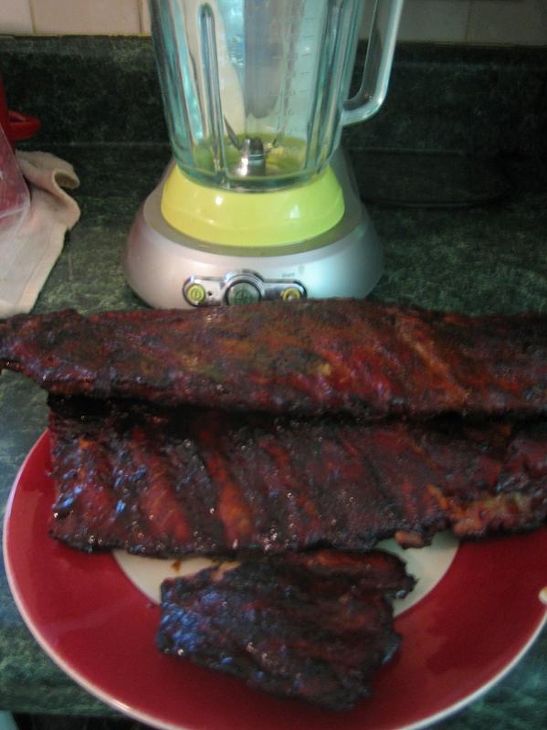 pack 3 racks in there. I bought a dozen racks and might get three more on Mon. Pictures speak for themselves. I ended up using sauce on exactly one and a half racks. Landlady got one, I got one, will bring one to work. First time I ever put sauce on a rack of ribs. Over-cooked, btw. |