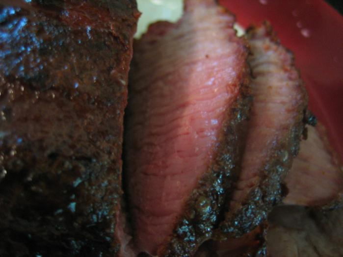 get a bit done for fridge burgers. you should leave some good pink in there for when you nuke em later in the week. Then I threw on a small chuck roast that had been coated in rub the night before. Seared it on two sides and left it to smoke for three hours. Sliced it with the grain cause it was so small. The slices chew extremely well regardless. I tasted everything, the burgers were crispy on the outside, crumbly on the inside. A sure sign of being worked JUST enough to mix in the spice and binder. The chuck was pure heaven, a nice spicy bark and a pure sweet beef flavor inside. Outstanding flavor all around. |