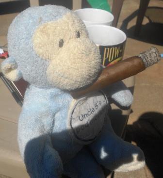 Nice sunny day to smoke. By the way it was almost 70 and it was today. The monkey is my smoking buddy today.