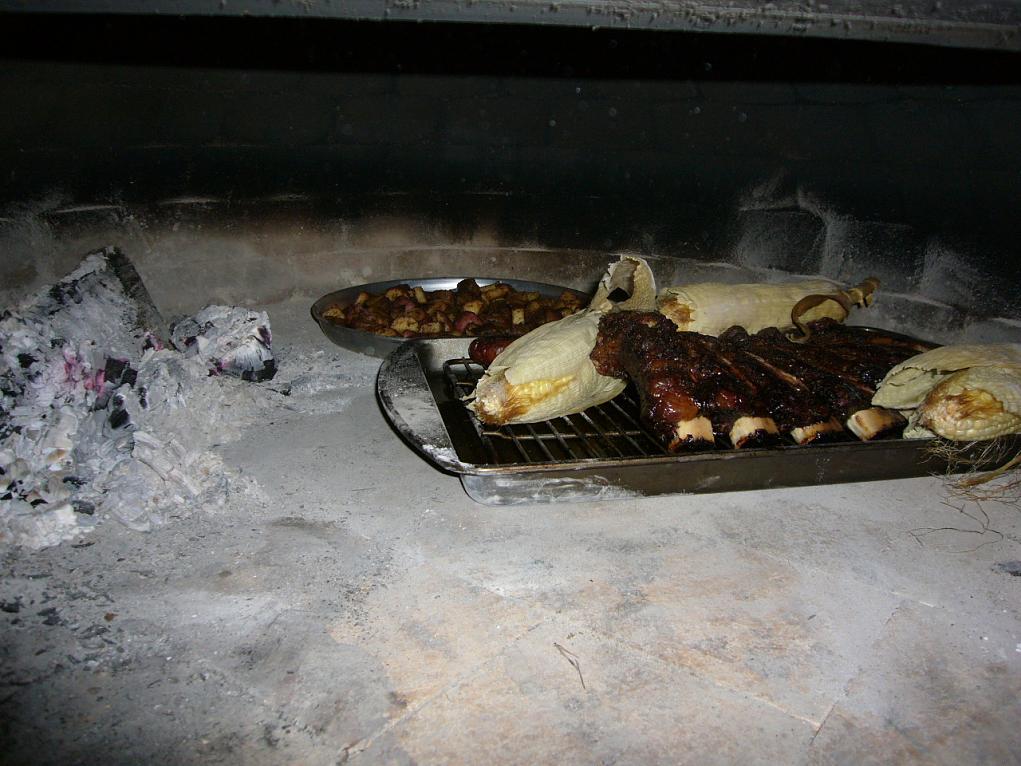 We had dino bones, corn, and potatoes last night. Here's a shot of them slow cooking in the chamber...