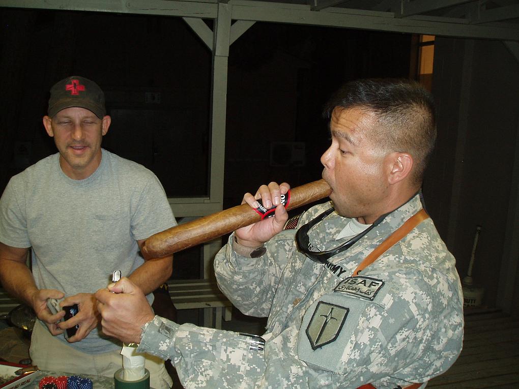 He didnt actually smoke it. Everyone said, whoever lost first at poker had to smoke it. Well, I lost first, twice, but that thing would take a week. Hopefully it holds together, the wrapper was starting to come off. No thanks to another, I might actually have to try to smoke it and I dont get a week off at a time, haha!