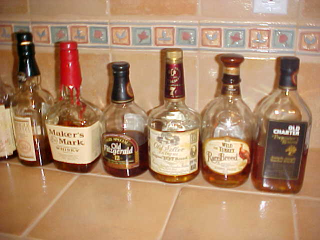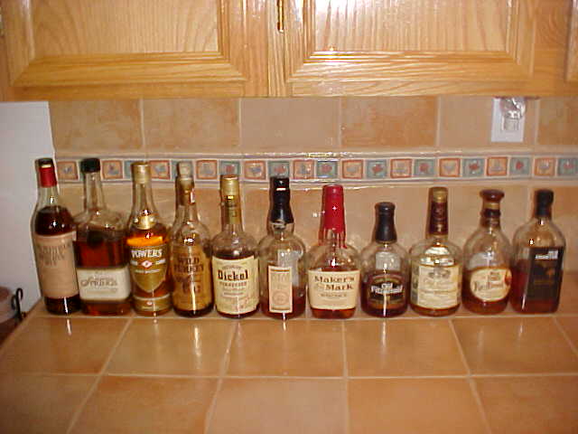 I thought I'd post a picture of the bottles of Bourbon/Whiskey that I have on hand for sipping when I enjoy my cigars and pipes! May be a few others will do the same.