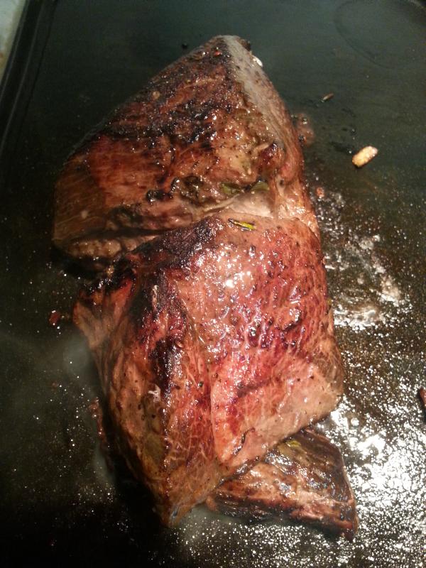 There was also a tiny third muscle cut there, you can kind of see it poking out at the bottom of the searing photo, about the size of a carrot. That one came out more like a grilled steak. I think it would have sucked cold.
