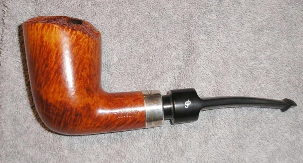 The tobacco chamber was stained the same color as the exterior of the bowl, this caused an off flavor which required a few bowls of tobacco be smoked before the taste of the tobacco was true. The draft hole is drilled to the right and low of center in the mortice, as a result the draft enters the bowl to the right and partly below the bottom of the bore. Dispite this the pipe provides a good dry smoke. The stem fits snugly and is removed without effort. The aluminum reducer that is threaded into the mouth piece, coupled with the poor drilling prevent a pipe cleaner from passing into the bowl. The pipe has great hand feel and the thick walls prevent it getting to hot to hold. Astheticly this pipe gets 10 of 10, the enginering is spot on, but the drilling is shocking for a pipe of this grade from Peterson’s. I decided to keep this pipe dispite it’s flaws, but it will be the last Peterson's pipe I order online. D |